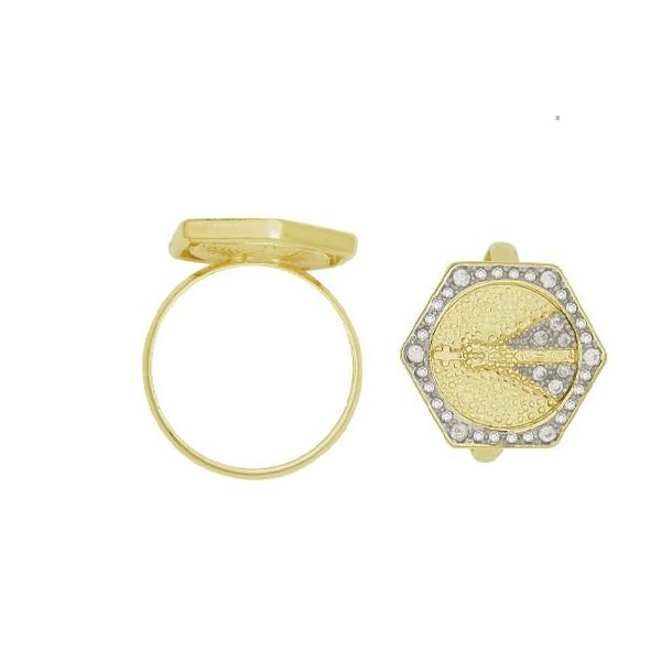 Anel Fundição 36 Zircônia - Heptágono C/ N. S. Aparecida 18Mm C/ Ródio