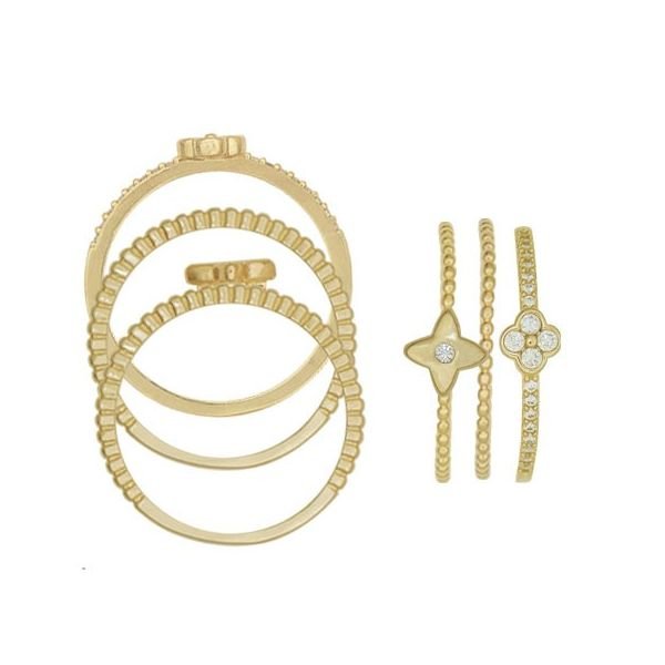 Anel Triplo Liso Com Trevo Aro Bolinha Trevo Com 21 Zircônias