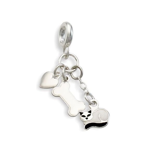 Berloque De Prata Cacho Com Ossinho Coração Gato 7Mm