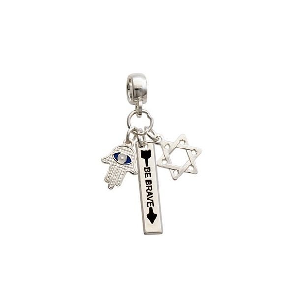 Berloque De Prata Estrela Davi Mão Fatíma Placa Be Brave