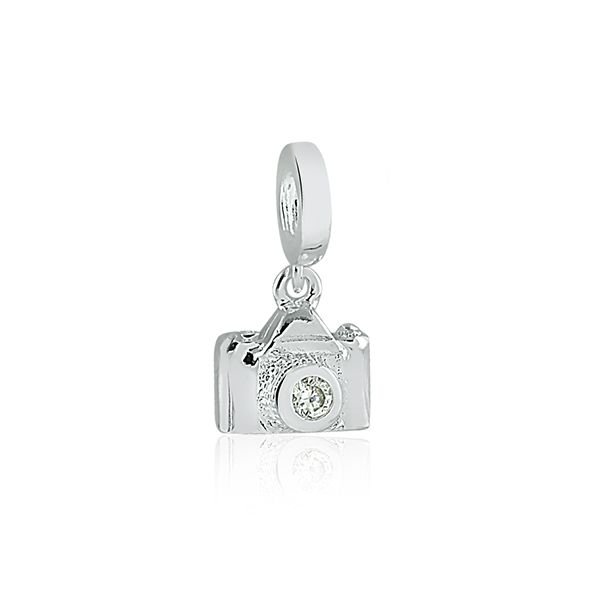 Berloque De Prata Máquina Fotográfica Com Zircônia