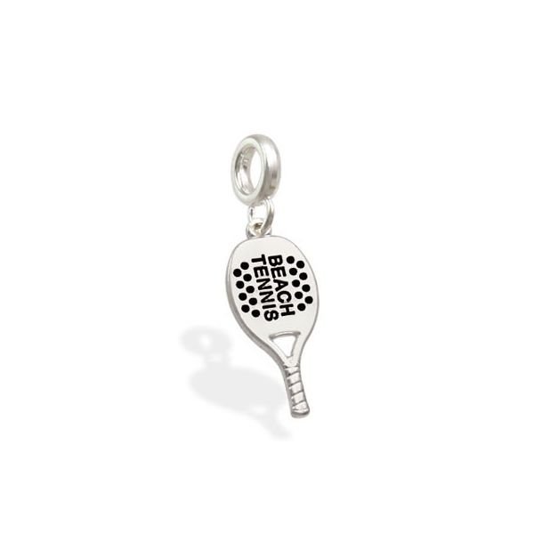 Berloque De Prata Raquete Beach Tênis Com Resina 2 Lados