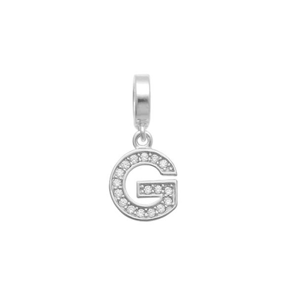Berloque Prata Letra G Com Zirconias Cristal