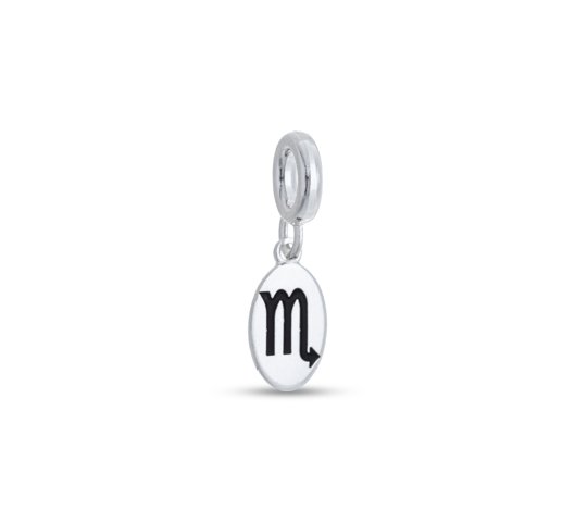 Berloque Prata Oval Signo Escorpião Com Resina