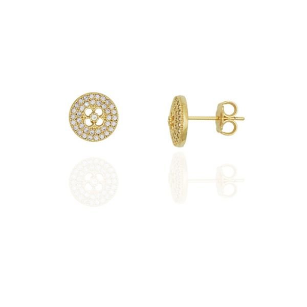 Brinco 78 Zircônia Redondo Com Vazado Flor