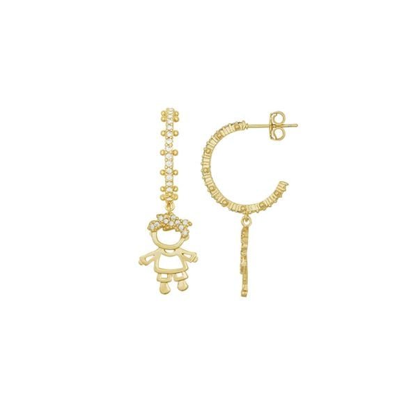 Brinco Argola Fundida Com Menino Pendurado Com Zircônia