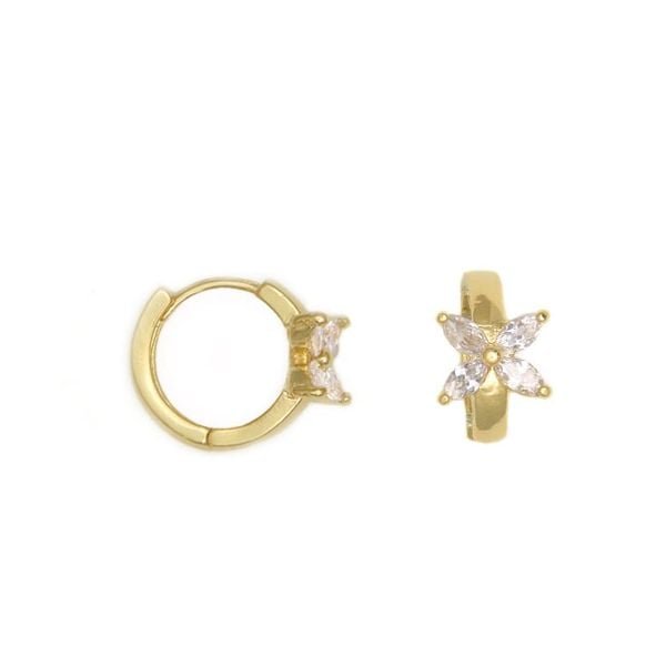 Brinco Argolinha Flor Com Petalas De Zirconia