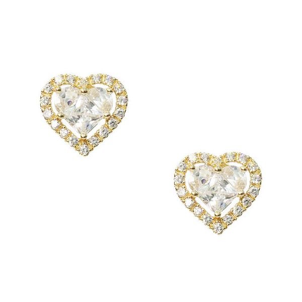Brinco Coração Borda Zircônia Meio Pedra Coração
