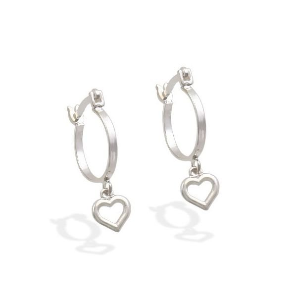 Brinco De Prata Argola 13Mm Coração Vazado