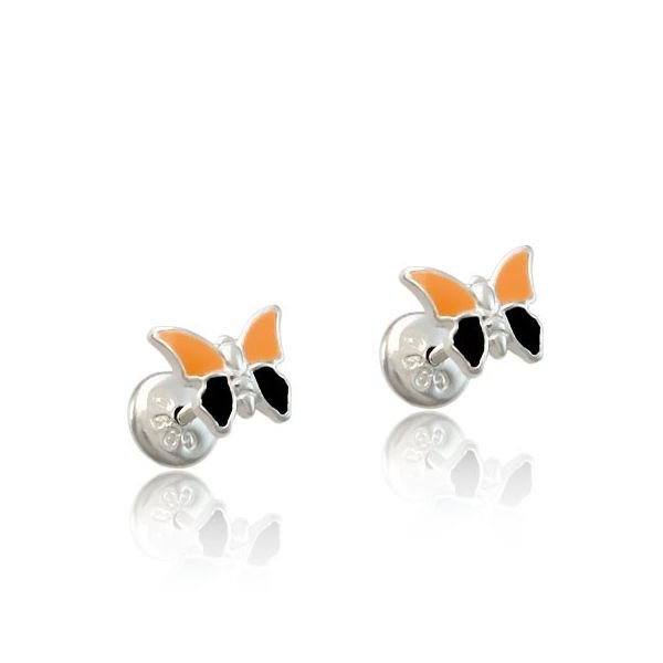 Brinco De Prata Infantil Borboletinha Estampada Resina Azul E Preto Tarraxa Baby