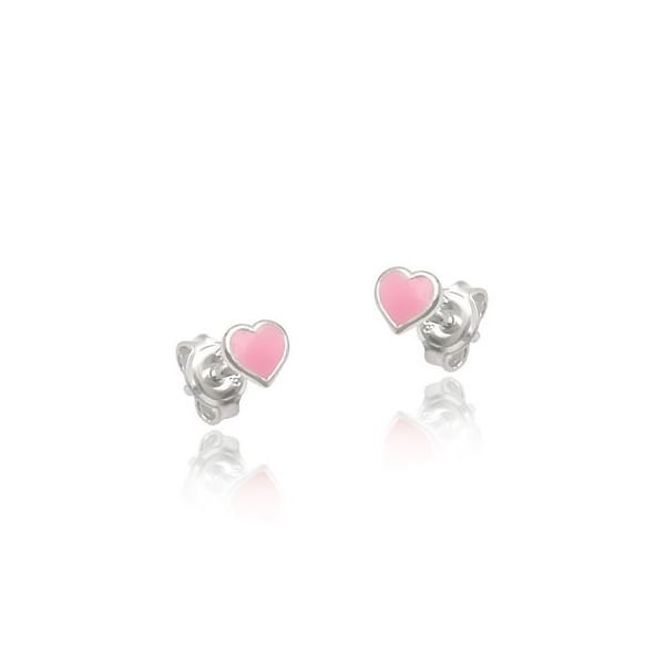 Brinco De Prata Infantil Coração Com Borda Resina Rosa