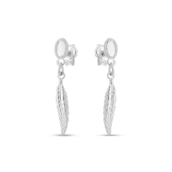 Brinco De Prata Oval Liso 6Mm Com Pena 15Mm