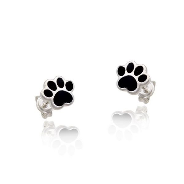 Brinco De Prata Pata 9.5Mm Reticulada Resina Preta