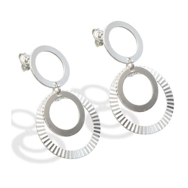Brinco De Prata Redondos Vazados Com 1 Redondo Vazado Diamantado 19.5Mm