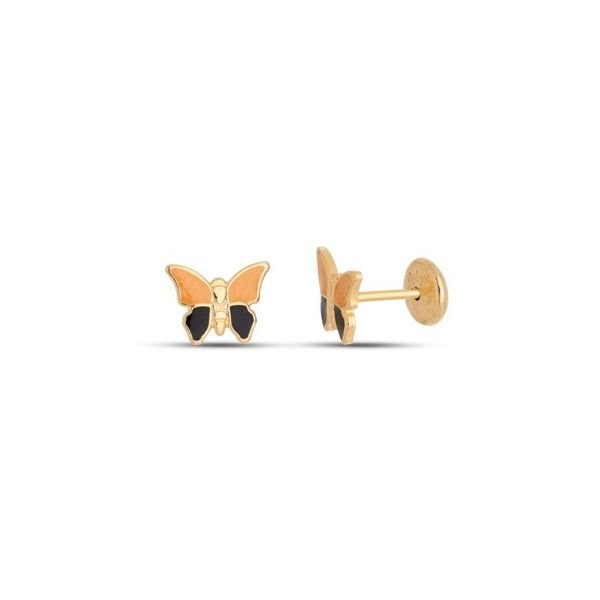 Brinco Infantil Borboletinha Estampada Com Resina Amarelo E Preto Tarraxa Baby