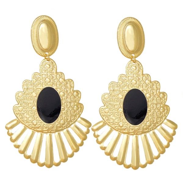 Brinco Oval Com Gota Desenhada Com Resina