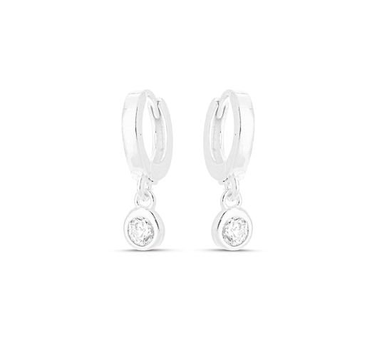 BRINCO PRATA ARGOLA COM 1 ZIRCONIA PENDURADA