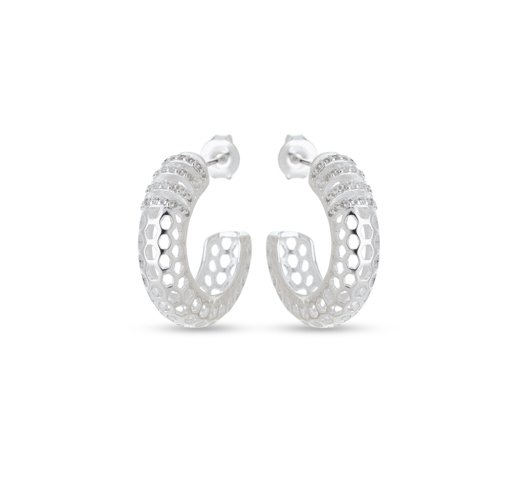 Brinco Prata Argola Com Detalhes Em Zirconia