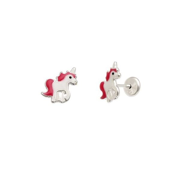 Brinco Prata Unicórnio Tarraxa De Pressão