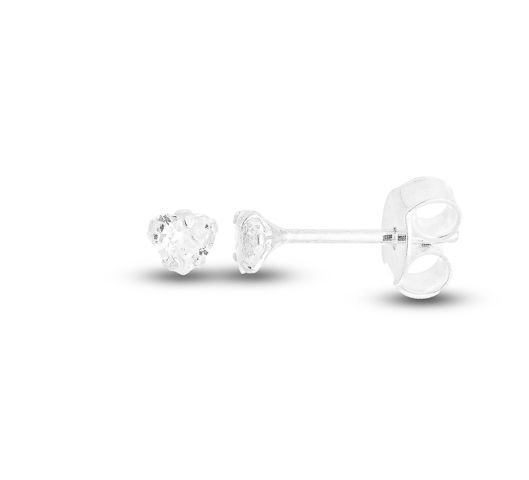 BRINCO PRATA ZIRCONIA CORAÇÃO (3MM)