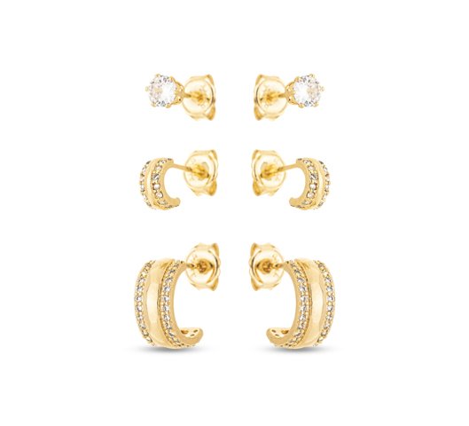 Brinco Trio Com Argolinhas E Ponto De Luz