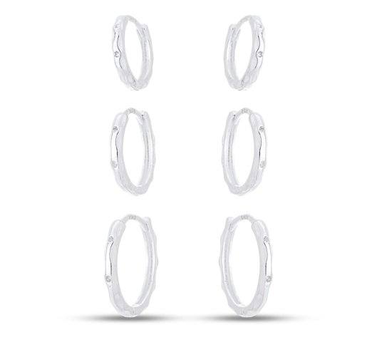 Brinco Trio Prata Argola Organica Com Zirconia