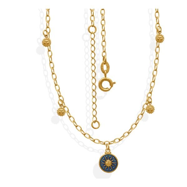 Choker Cadeado Com 1 Sol Místico 3 Solzinho Resina Azul
