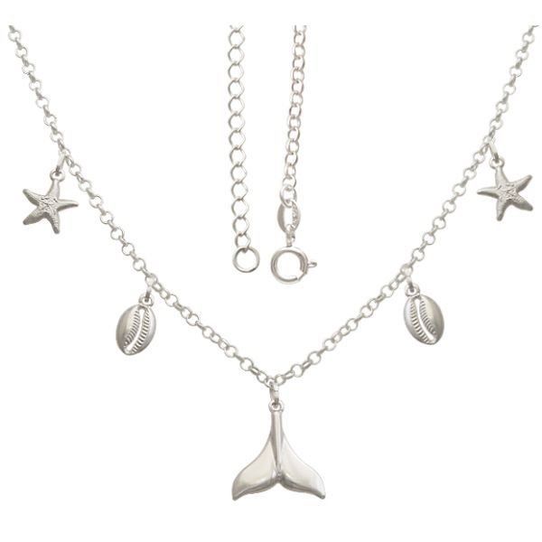 Choker De Prata Com 1 Rabo De Sereia 2 Buzio 2 Estrela Do Mar