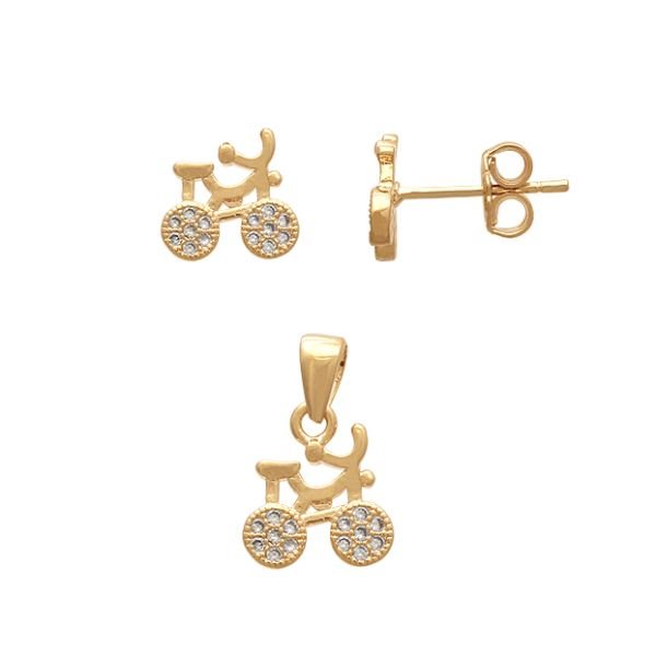 Conjunto Brinco E Pingente Bicicleta Com Microzirconias.