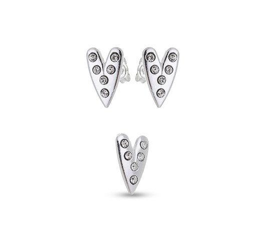 Conjunto Prata Coração Comprido Com 6 Pedras Cristal