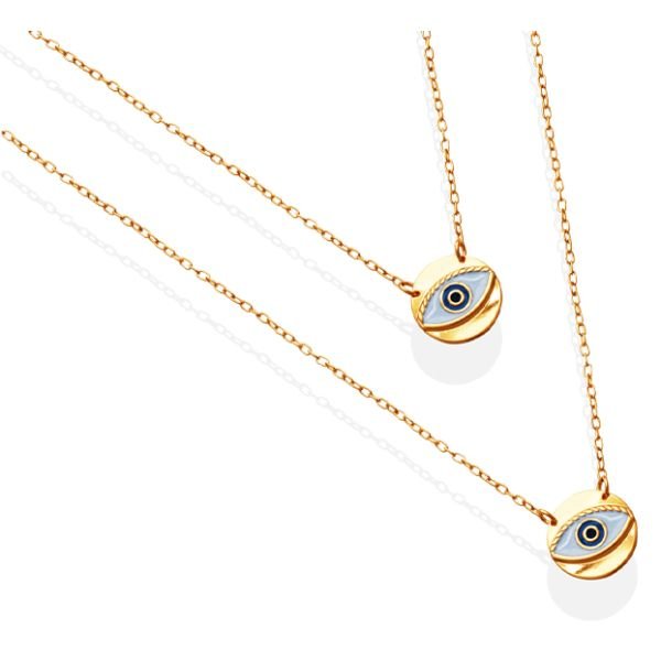 Escapulário Com 1 Olho Grego Diamantado 1 Liso Branco Azul Preto