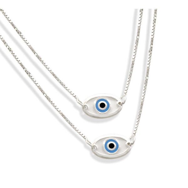 Escapulário De Prata Com 2 Oval Olho Grego 12Mm Com Resina