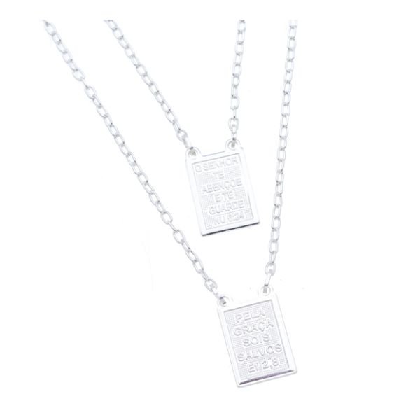 Escapulário De Prata Com Oração 2 Lados 60Cm