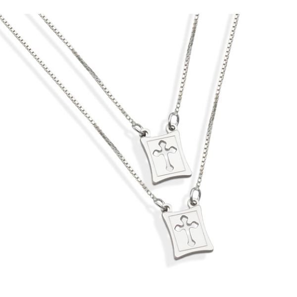 ESCAPULÁRIO DE PRATA CORRENTE VENEZIANA COM CRUZ 10X8MM VAZADA 60CM
