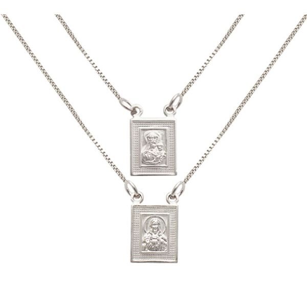 ESCAPULÁRIO DE PRATA VENEZIANA SAGRADO CORAÇÃO JESUS NOSSA SENHORA DO CARMO 70CM