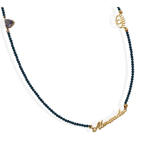 Escapulario Miçangas Azul Abençoada Com Olho E Coração Em Pedra Lilás