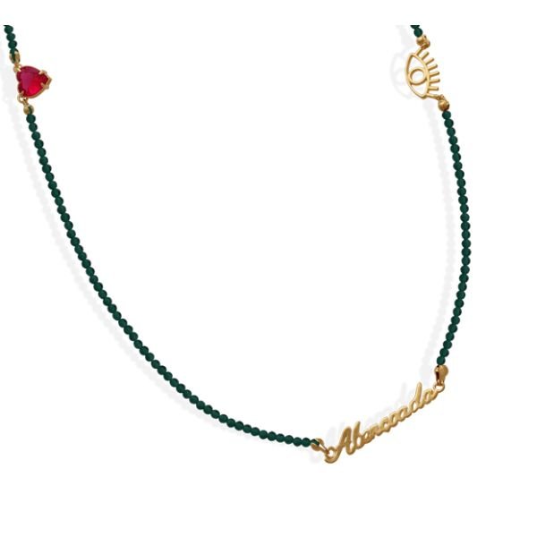 Escapulario Miçangas Verde Abençoada Com Olho E Coração Em Pedra Vermelha