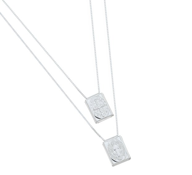 Escapulario Prata Veneziana Passante Sao Bento Duplo