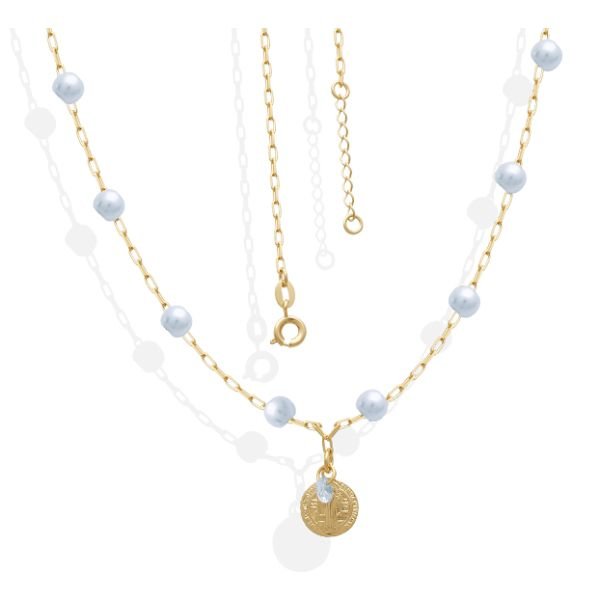 Gargantilha Cartie E Elo Longo Com São Bento Pérolas E Zircônia 40Cm
