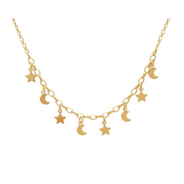 Gargantilha Com 4 Estrelas Lisas E 4 Luas Lisas
