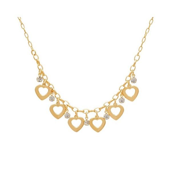 Gargantilha Com 6 Pedras E 6 Corações Lisos Com Alongador De 5Cm