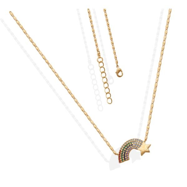 Gargantilha Com Estrela Cadente Colorida Alongador 7Cm
