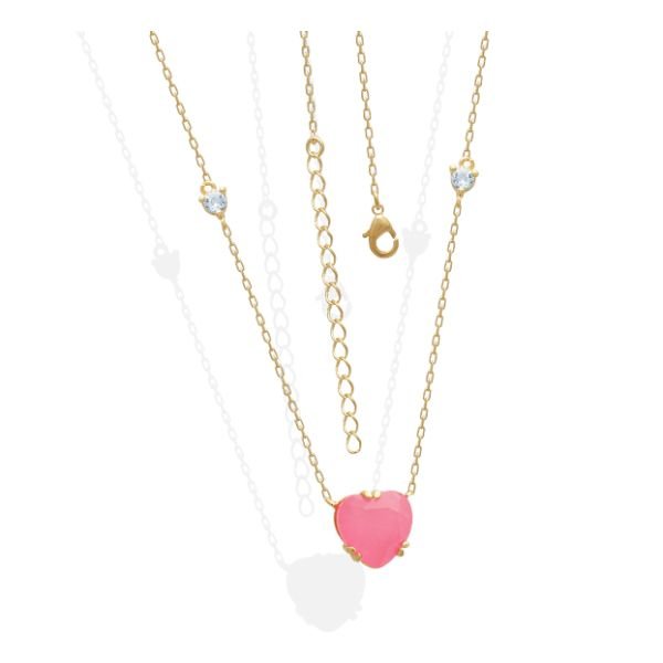 GARGANTILHA COM PINGENTE CORAÇÃO E ZIRCONIAS 10CM ALONGADOR 40CM
