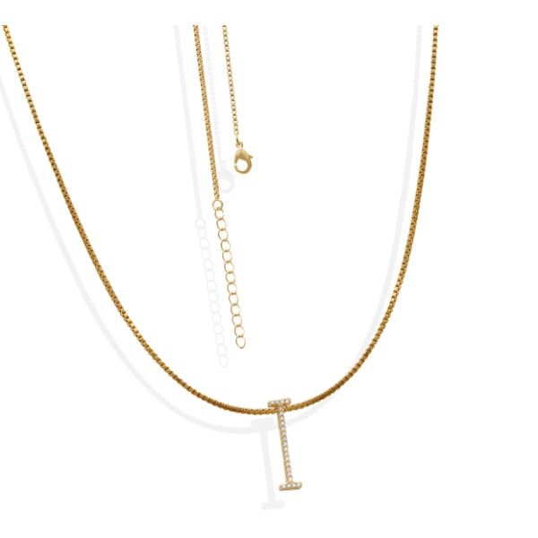 Gargantilha Com Pingente Letra I Cravejada 10Cm Extensor 45Cm