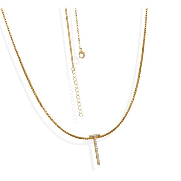Gargantilha Com Pingente Letra T Cravejada 10Cm Extensor 45Cm
