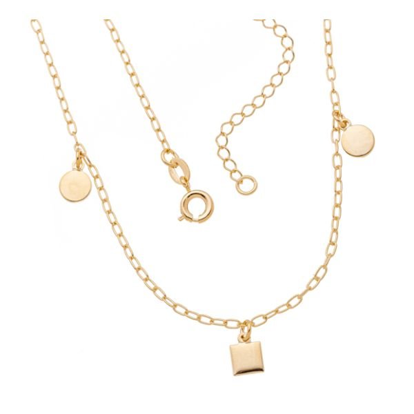 Gargantilha Com Quadrado 2 Redondo 2 Oval 6Mm Lisos Maciços 40Cm