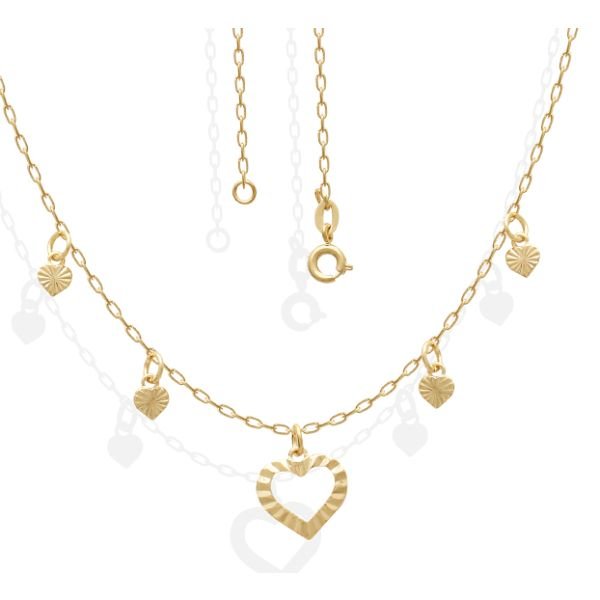 GARGANTILHA CORAÇÃO VAZADO COM 6 MINI CORAÇÕES DIAMANTADOS 40CM