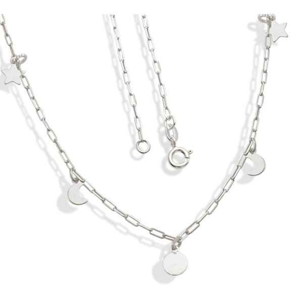 Gargantilha De Prata Com 1 Redondo 2 Luas 2 Estrelas Lisas Retas