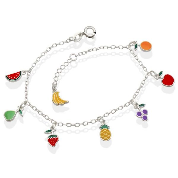 Gargantilha De Prata Com 8 Frutas Diversas Resina Colorida 40Cm