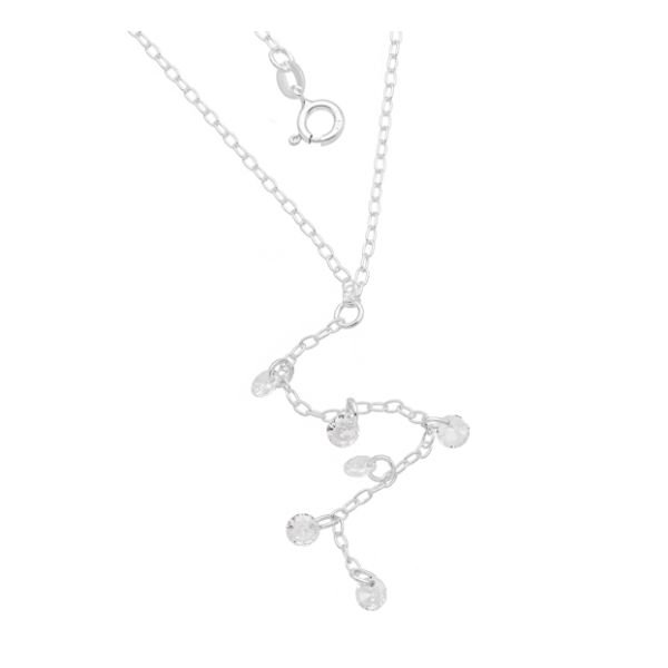 GARGANTILHA DE PRATA COM CORRENTE PENDURADA COM 6 PEDRAS CRISTAL 40CM